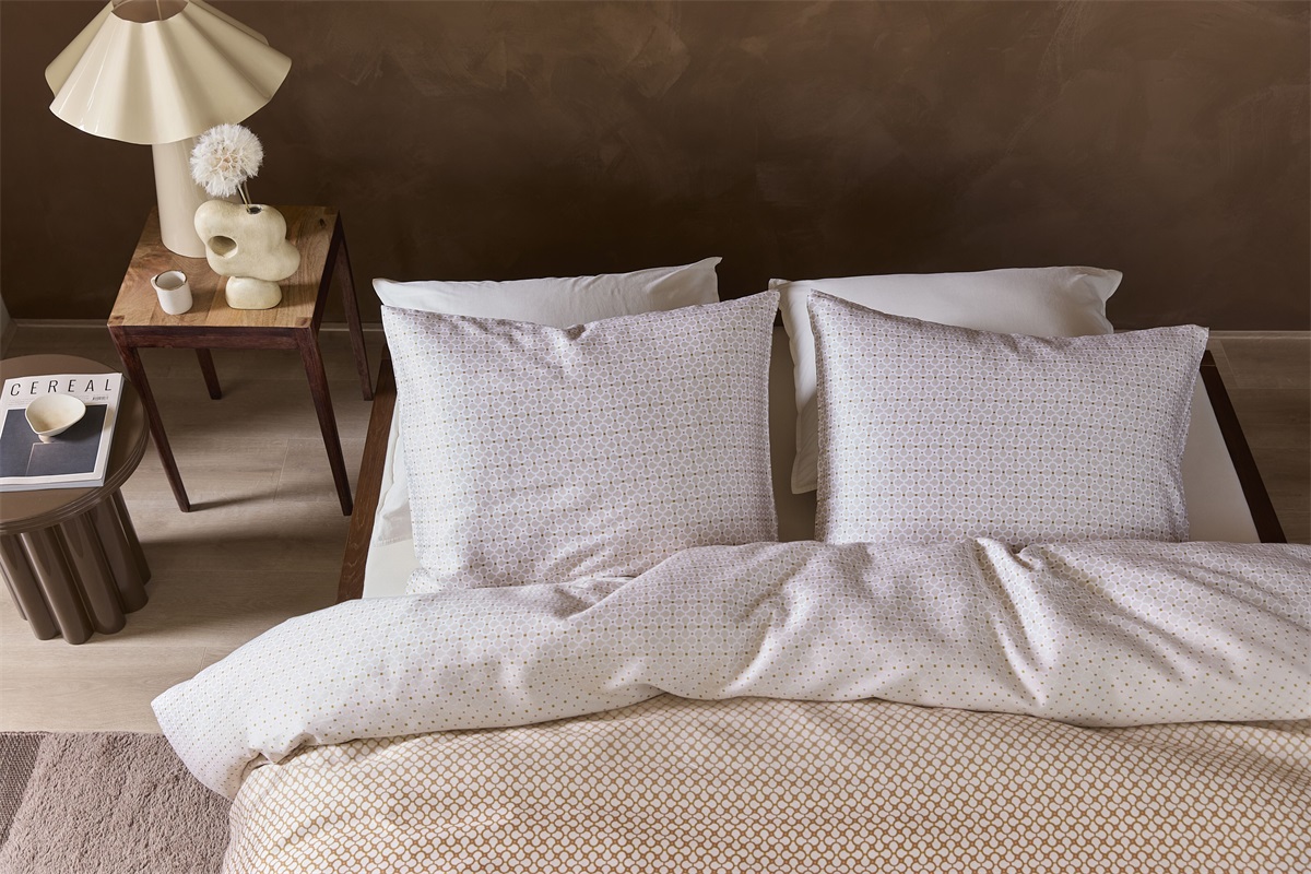 Dekbedovertrek Nadine combineert een verfijnd geometrisch dessin met een subtiel verloop in een warme, natuurlijke kleurstelling. Het overtrek straalt rust en elegantie uit, perfect voor een stijlvolle slaapkamer. De hotel chique stijl geeft je slaapkamer een luxe uitstraling. Je slaapt in een omgeving die sereniteit ademt en wordt wakker met een gevoel van comfort en klasse.